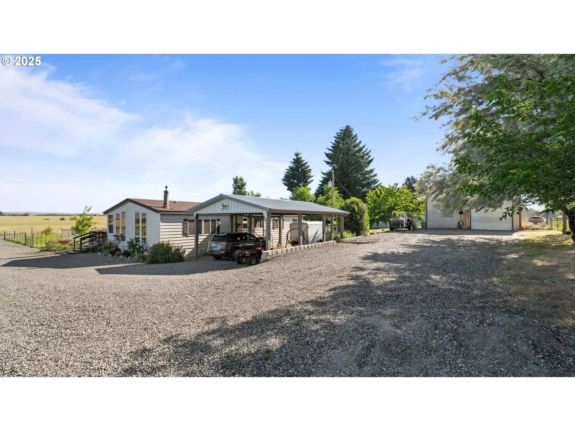 Charming 2-Bedroom 2-Bath Home on Acreage with Water Rights Nestled on spacious acreage, this well-maintained home offers the perfect blend of comfort, privacy, and potential. Featuring 2 bedrooms and 2 bathrooms, the home is filled with abundant natural light, creating a warm and inviting atmosphere throughout. Step outside and enjoy your own outdoor haven- ideal for relaxing, entertaining, or simply soaking peaceful, scenic surroundings. The property includes a shop, carport, and two sheds providing ample space for hobbies, storage, or expansion. With 1 acre of water rights and plenty room to grow, this property offers incredible potential. A little updating will make it truly your own. Don't miss the opportunity to own your own private escape with endless possibilities!